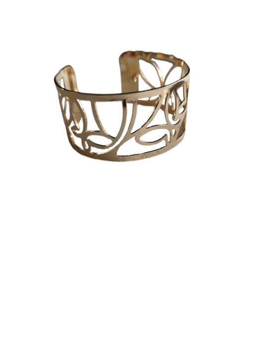 Brede goudkleurige armband met GOUD-ZWART PU lederen band, 3 cm