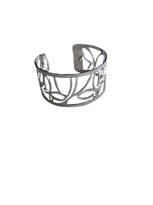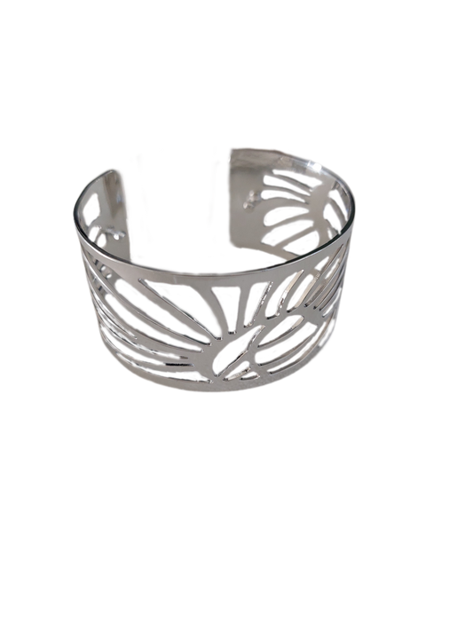 Brede zilverkleurige armband met ZILVERGRIJS PU lederen band, 25 mm