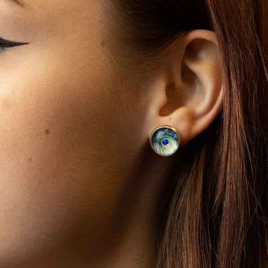 Set Oorknopjes met Gekleurde Cabochons | Pauwenveer