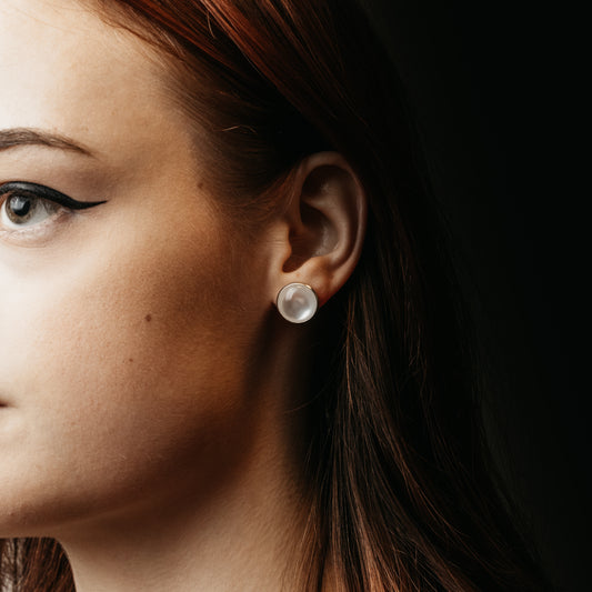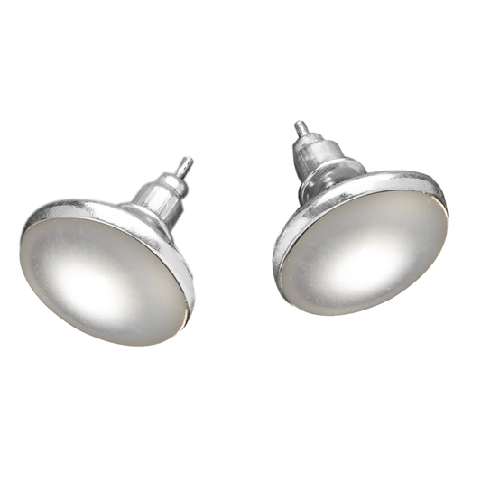 Set Oorknopjes met Gekleurde Cabochons | Parelmoer Wit