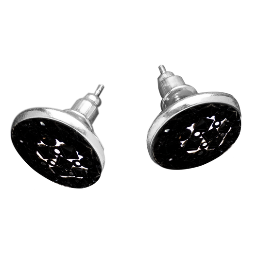 Set Oorknopjes met Gekleurde Cabochons | Zwart Glans Reliëf