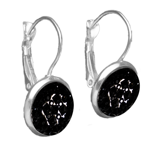 Set Oorhangers met Gekleurde Cabochons | Zwart Glans Reliëf