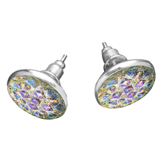 Set Oorknopjes met Gekleurde Cabochons | Kristal Reliëf
